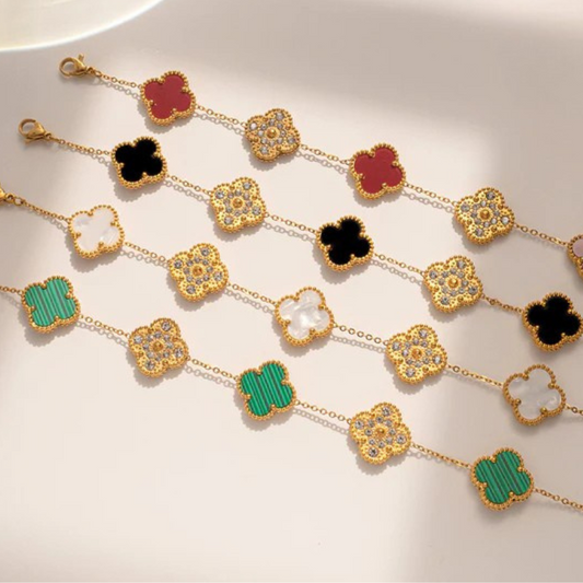 SERAYA – Zweifarbiges Cloverleaf-Armband, 18K vergoldet